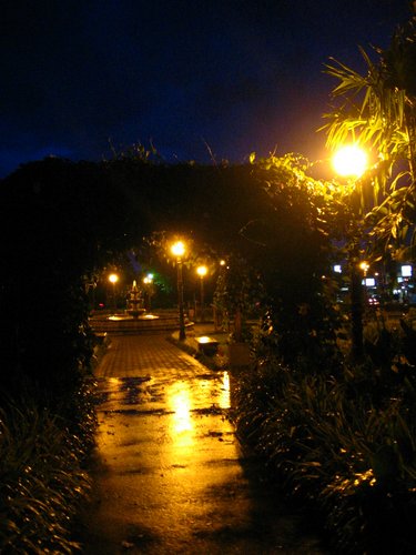 We arrived at our destination around midnight Mountain Time and stepped outside to grab a bus to the nearby town of Alajuela. A wily taxi driver convinced us this bus wasn't going to arrive for another hour and took us to our desired hostel for $3 (after searching in vain for one that would give him a commission). At $25 for a double with the bathroom down the hall, this was by far the most expensive night of the trip, but such is the price of reaching a place after 99% of the businesses have closed down for the night.