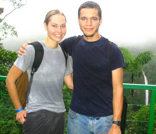 Remembering that we had in fact not been able to lock our door the previous night, we looked around town for another place to stay, but since nothing really compared with our $8/night room, we decided to take our chances with the "thieves". In the morning, we were eventually picked up by a minibus (it was 20 minutes late "because of the rain") and transported down a paved road (in fact the same one we had taken from the park the day before) to the boat dock. This didn't exactly mesh with the romantic images we had formed in our minds of driving a 4WD jeep through the jungle, but it was certainly less bumpy than it could've been. We were herded onto a tour boat with 30 other tourists and ferried across the very scenic Laguna Fortuna. On the other side, we boarded another set of very un-jeep-like minibuses and followed a series of dirt roads the rest of the way to our destination. We stopped for half an hour at a lunch counter which had made some arrangement with the drivers that provided them with unlimited free beer in exchange for unloading tourists there.