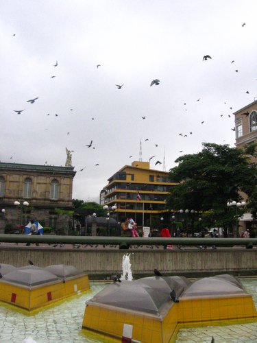 We breezed by a few parks, churches, a metal building, a yellow building, and many other hardly notable attractions. Costa Rica is not known for its vegetarianism, but as is always the case in a city this size, there's a fair share of freaks about, and we were able to find a chain that provided us with a set lunch including veggie ham pizza and orange soy flan.