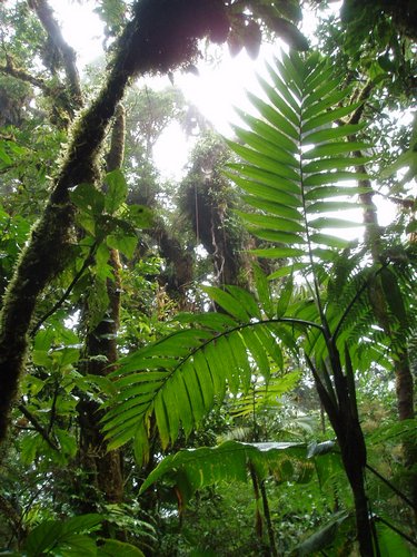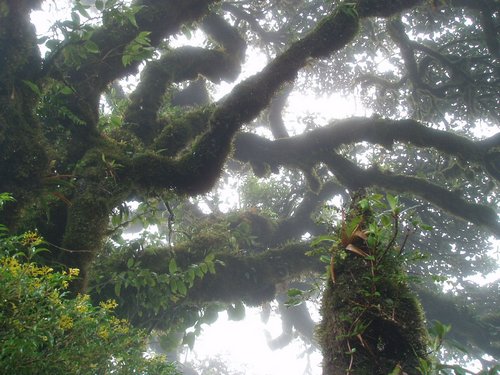 At around 10 minutes to six, I convinced Andie that we had to make the six o'clock bus to the Monteverde Cloud Reserve. The reasons for this were two-fold - one, to see all the critters of the forest before the flocks of tourists scared them off, and two, to prepare ourselves for the only bus to the pacific coast on the following day, which departed at 4:45AM. After a 30-minute bumpy ride in a part-time school bus, we reached the reserve, and realized right away that we had indeed beat the crowds. Unfortunately we had also arrived before any of the park personnel and there was no one to give us breakfast or sell us a ticket for the hikes. After some deliberation, we decided we could simply walk around the bar blocking off the trails - by the time we heard someone raising an objection, we were already a hundred meters up the trail - which is practically out of earshot.