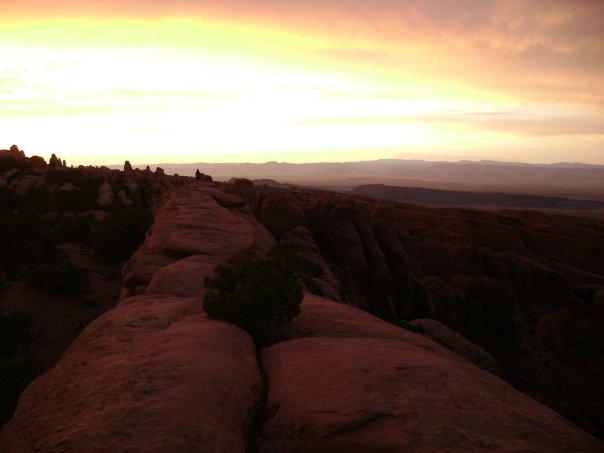 The Devil's Garden trail was truly an awesome hike. It was jam-packed with tourists (almost exclusively foreign), but these dwindled as the evening wore on, and the amazing arches that hung suspended on every side were more than enough to allow one to tune out the incessant exclamations in French, Italian and Hindi. Several points along the route had walls packed with perfect bouldering holds, and the final stretches consisted of scrambling along several narrow rock fins. Due to our tendency to climb every wall, boulder, and arch along the path (and there were plenty), we used about twice as much time as was projected, and we made the return hike in the dark.