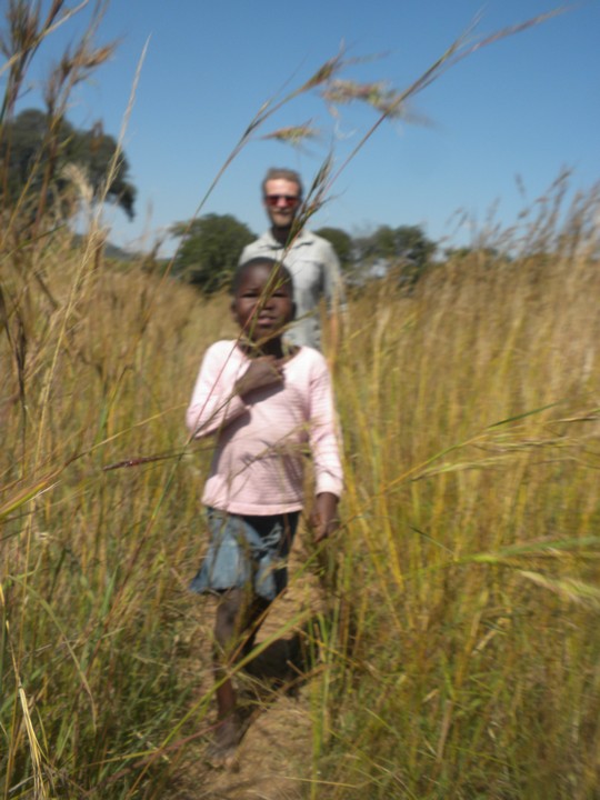 Back at camp, we made scrambled eggs and okra, then set out on another superbly fun and scenic road along Lake Kyle. Many a time we considered stopping at a random village, introducing ourselves, dropping off our stuff, and spending the rest of the day scrambling over the endless sea of rock that beckoned us at every turn. A star on our map and a highway sign led us to believe there was a cave of some interest 8km down a gravel side road. There was no further signage, so once the indicated distance had passed we just started asking random villagers. We wandered across a few farms and met Pete, who had the previous year bought several acres of farming land in a stunning valley, a nice brick hut, and a shed for the grand sum of $250. 'Zimbabwean farmer' was suddenly a rather appealing and very realizable career path. Pete directed us to return to a point a few kilometers back and ask someone else. When we believed we had arrived at the prescribed point, we found Prince, a youth from Harare who claimed to know the caves. He and his two young cousins guided us on a mile hike up the road to a boulder pile, where he directed us to an overhang that contained a handful of pretty standard bushman paintings. We had our suspicions whether this was actually the advertised cave, but we gave him a $2 tip anyway and returned to the highway.